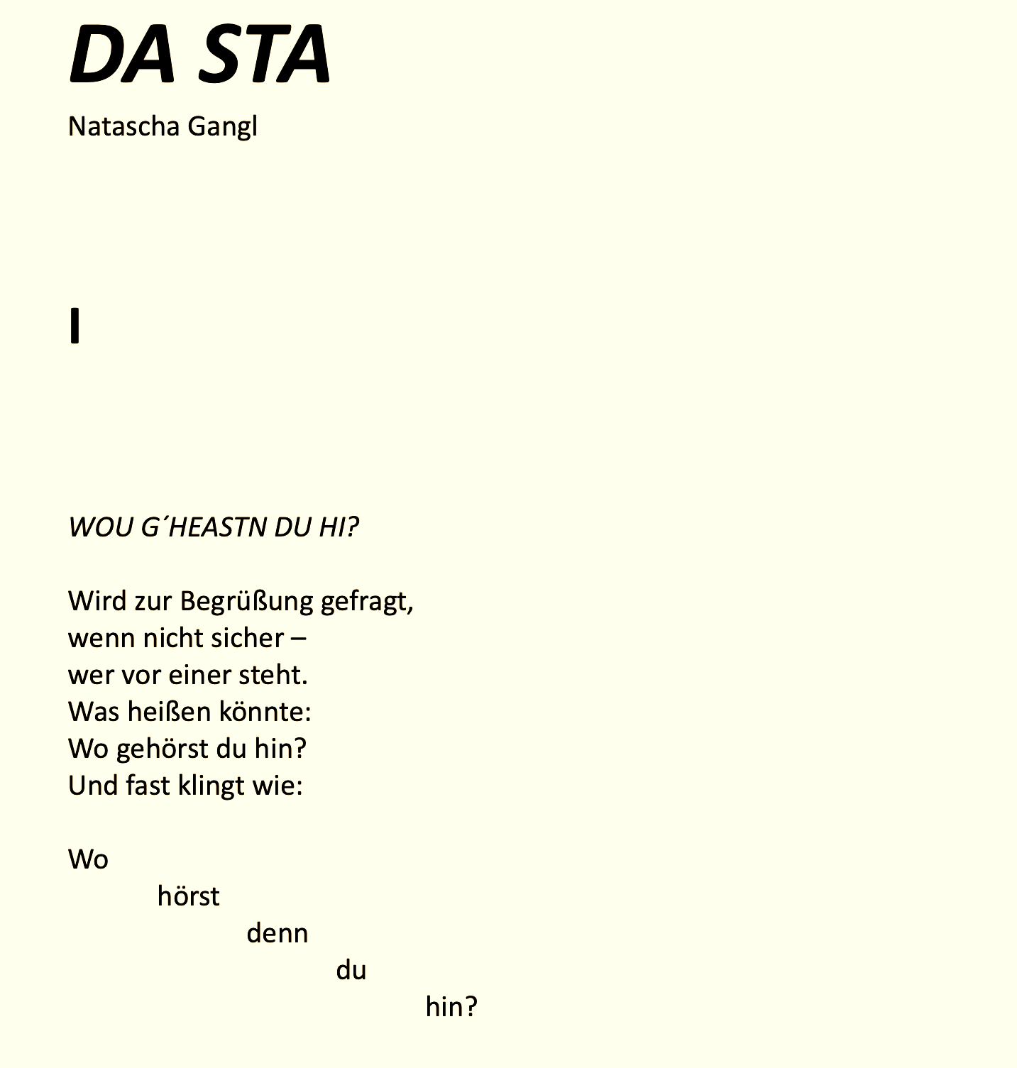 Natascha Gangl liest "DA STA”